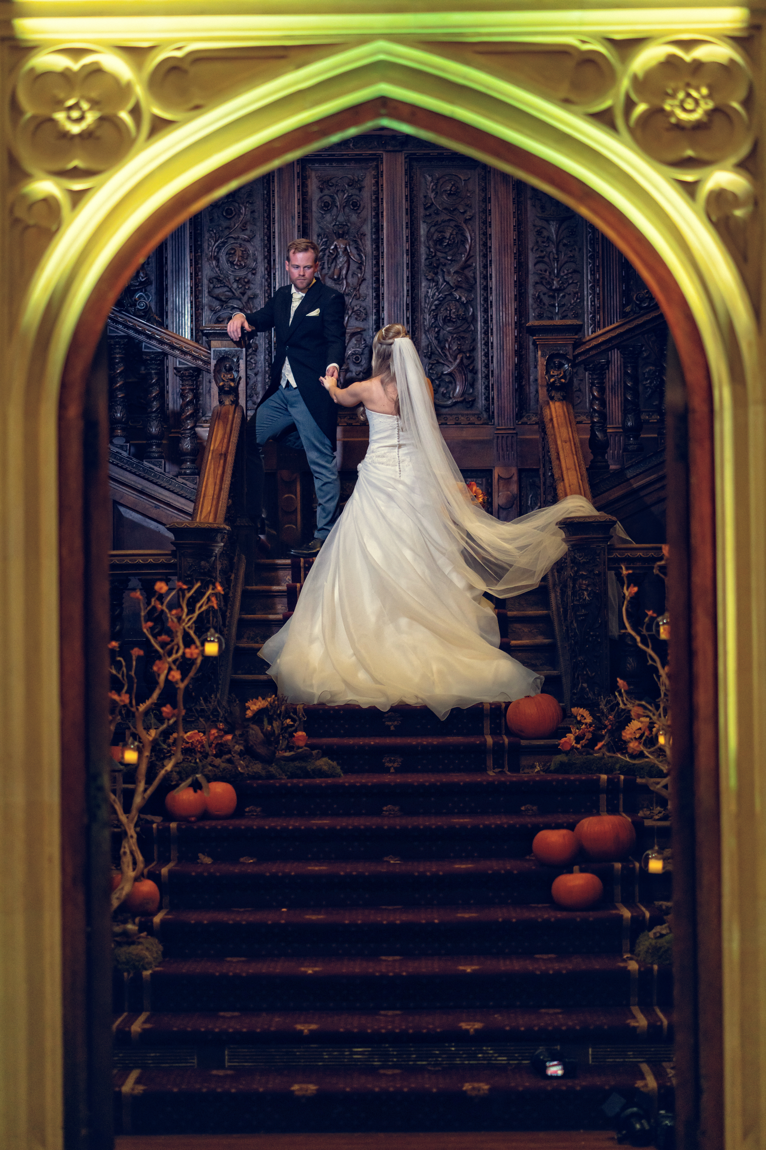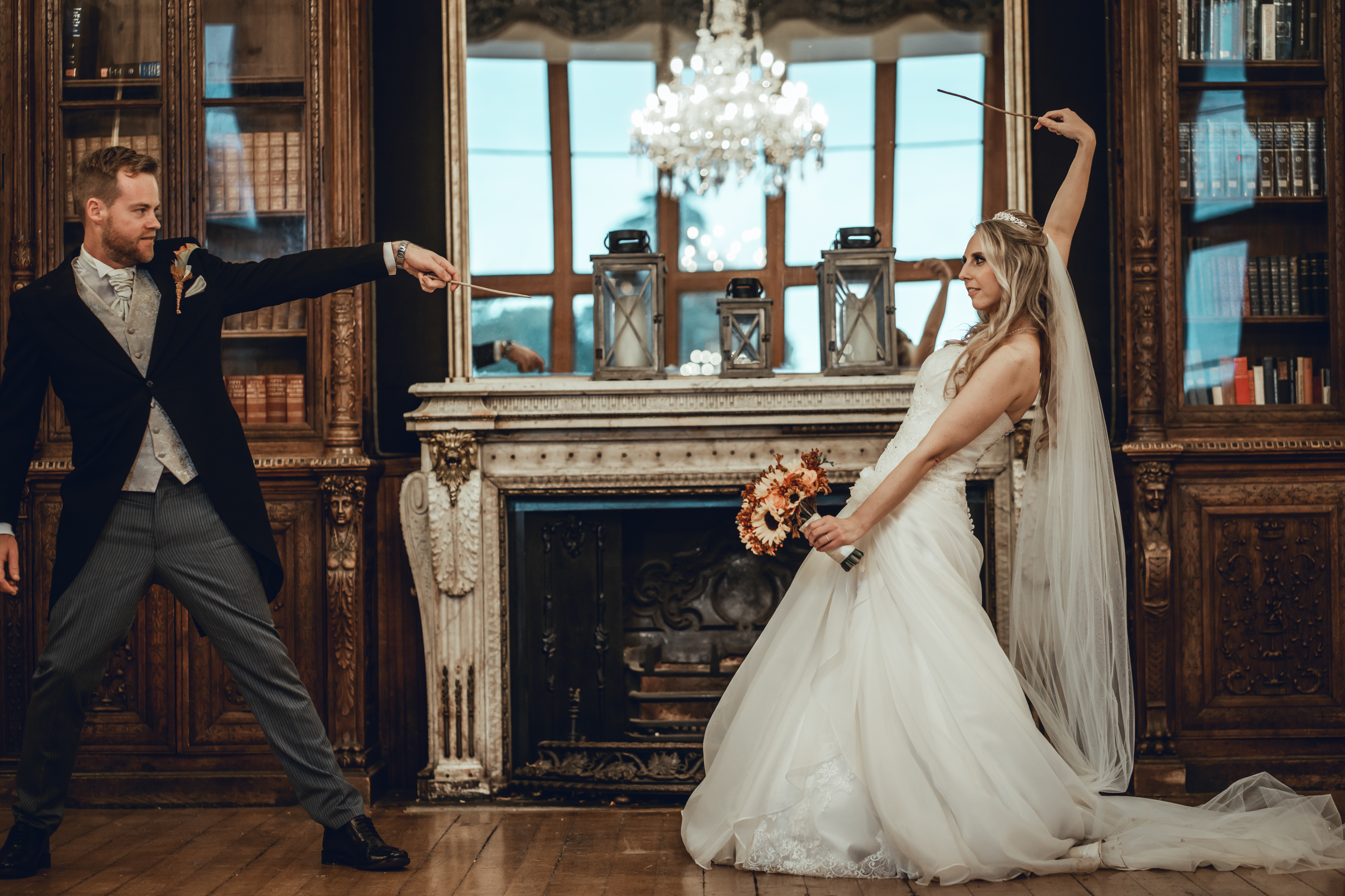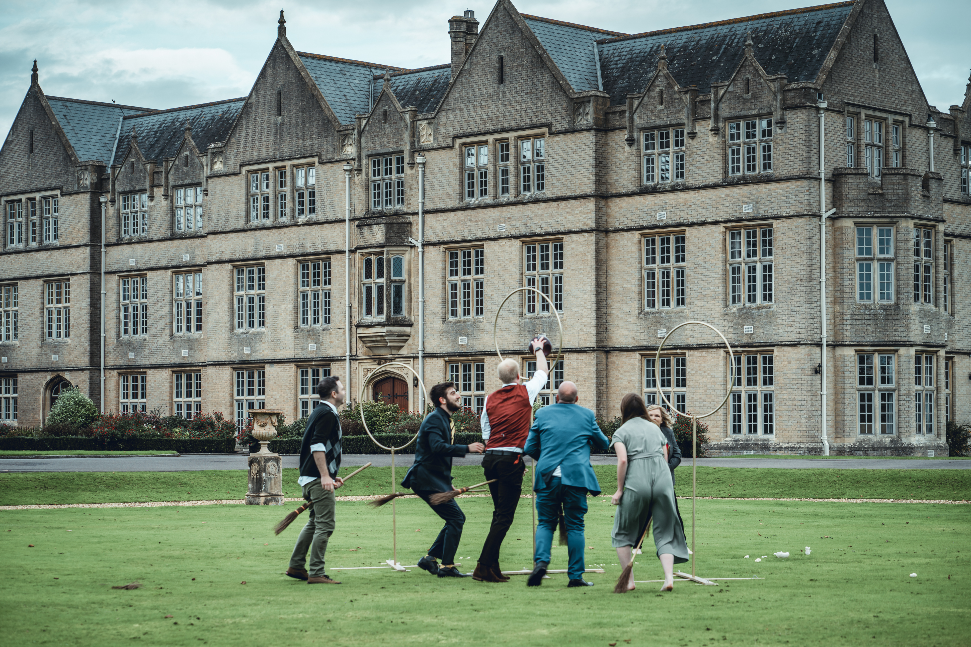 Today bore witness to an Owl that flew in the wedding ceremony to deliver the wedding rings, a 3 person staffed horse and carriage to service the Bride & Groom, a stunning setting reminiscent of Hogwarts, Quidditch being played on the lawns, to a Halloween inspiration in the night.