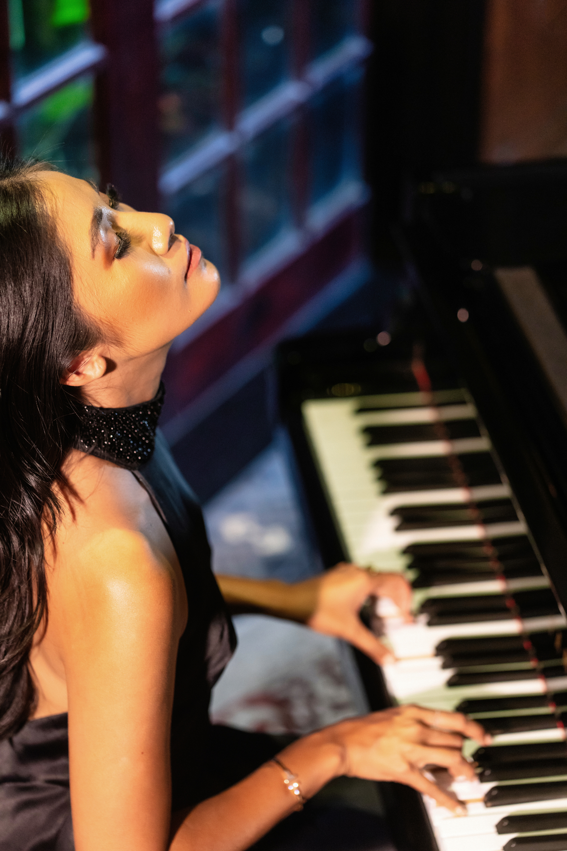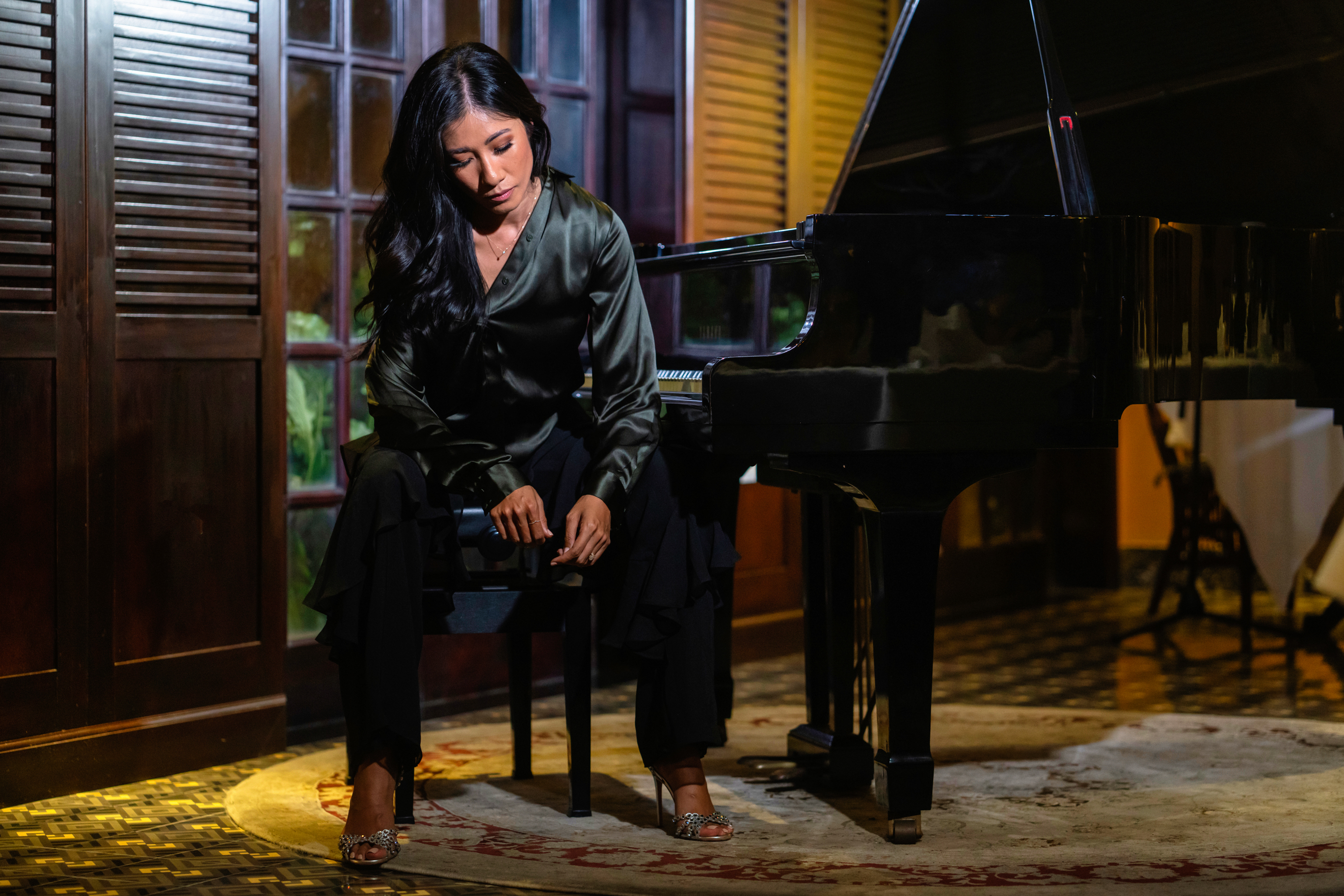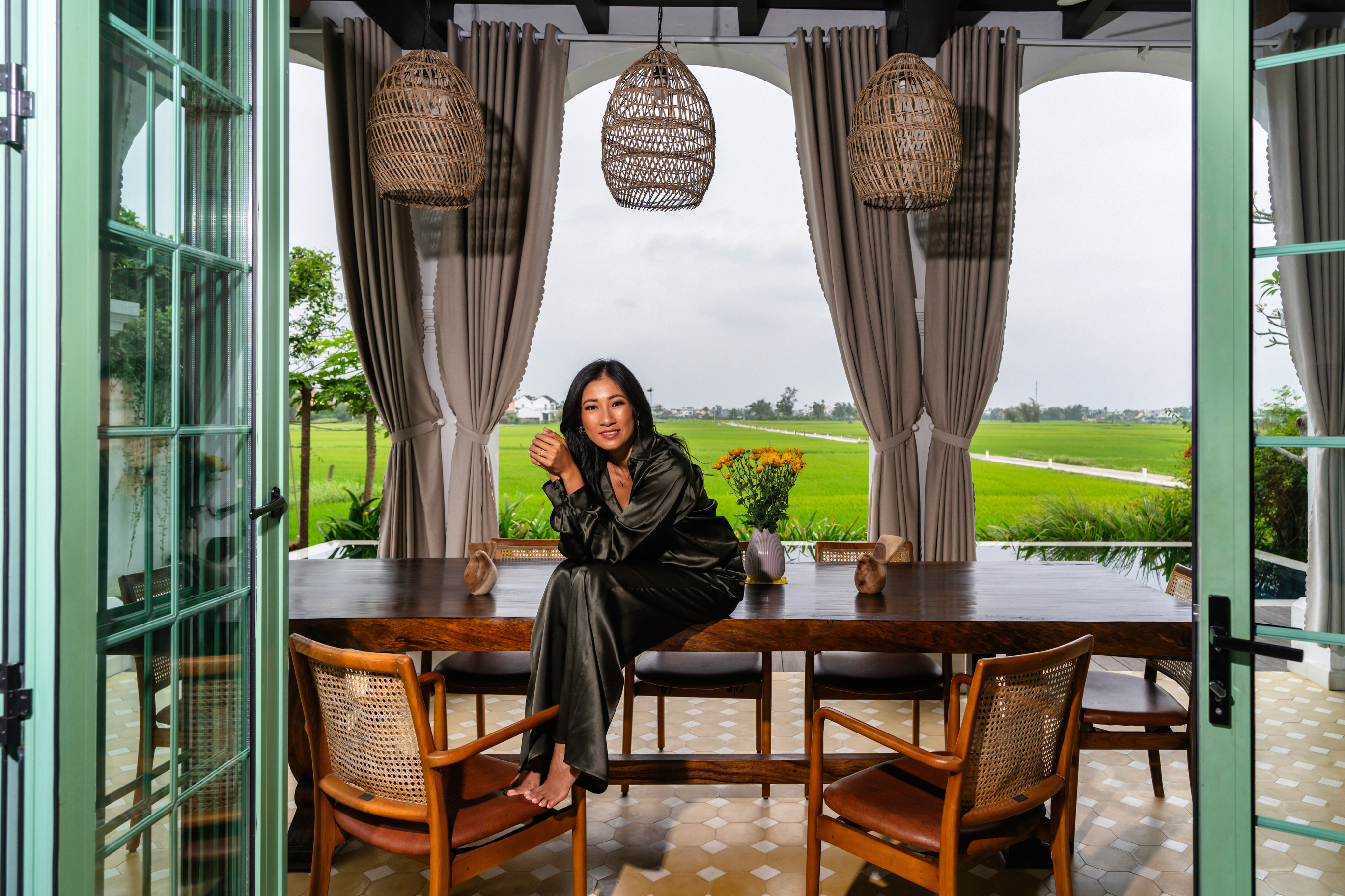 Here, I wanted to capture the essence of old Vietnam in the French colonial architecture and pastel colours, and contrasted by the modern female designs from Sass & Bide that gives the woman more presence, albeit in a relaxed manner. Then moving on to what embodies Van-Anh – being in front of a piano in a stage-grabbing dress design amidst modern colours and lighting, the perfect balance between classical, heritage and contemporary – just like Vietnam itself.