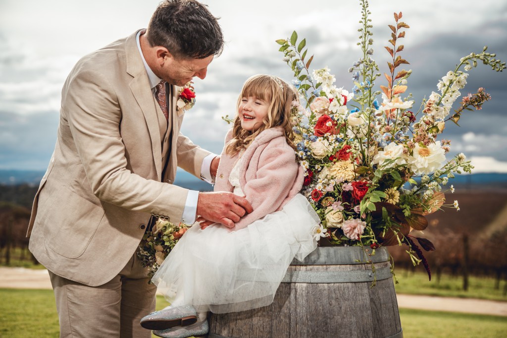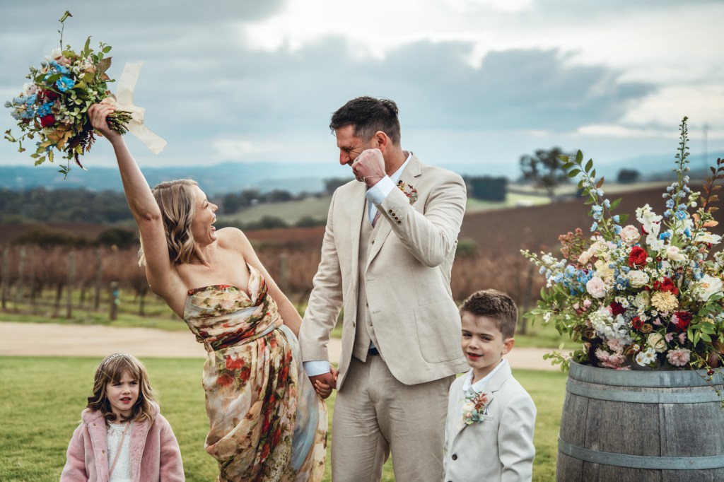 The infectious laughter of Golf Gods co-founder Shaun and the exuberant energy of his new wife Kerry – surrounded by families and loved ones at the Lane Vineyeard in Hahndorf – created a beautiful ensemble of colours, personalities and a gorgeous winter setting that the couple embraced for their special day.
