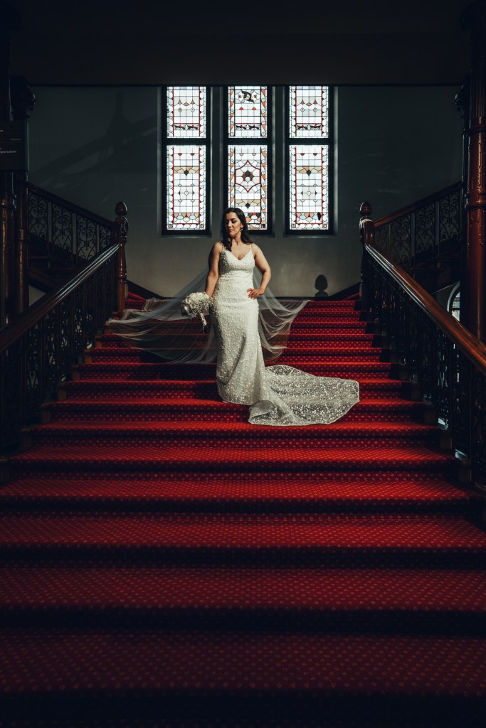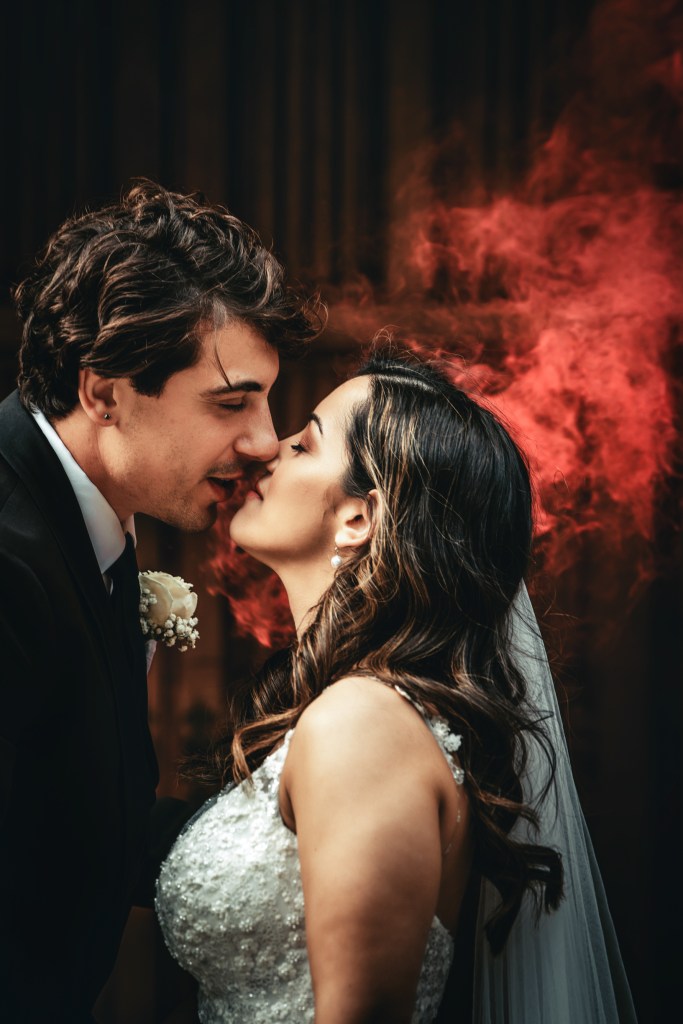 It also helped that Stephan and Claudia were such a fun, easygoing, and open-minded couple that were not only incredibly nice and relaxed on the day but trusted in our vision to deliver something that is uniquely theirs and that no other wedding can look like. From me being able to frame Stephan’s portrait with a smokebomb, to Cuban Cigars and a classic muscle car, to a sumptuous grand red staircase – every photo was not only a moment frozen in time, but an experience for everyone who was there to remember it by as well.